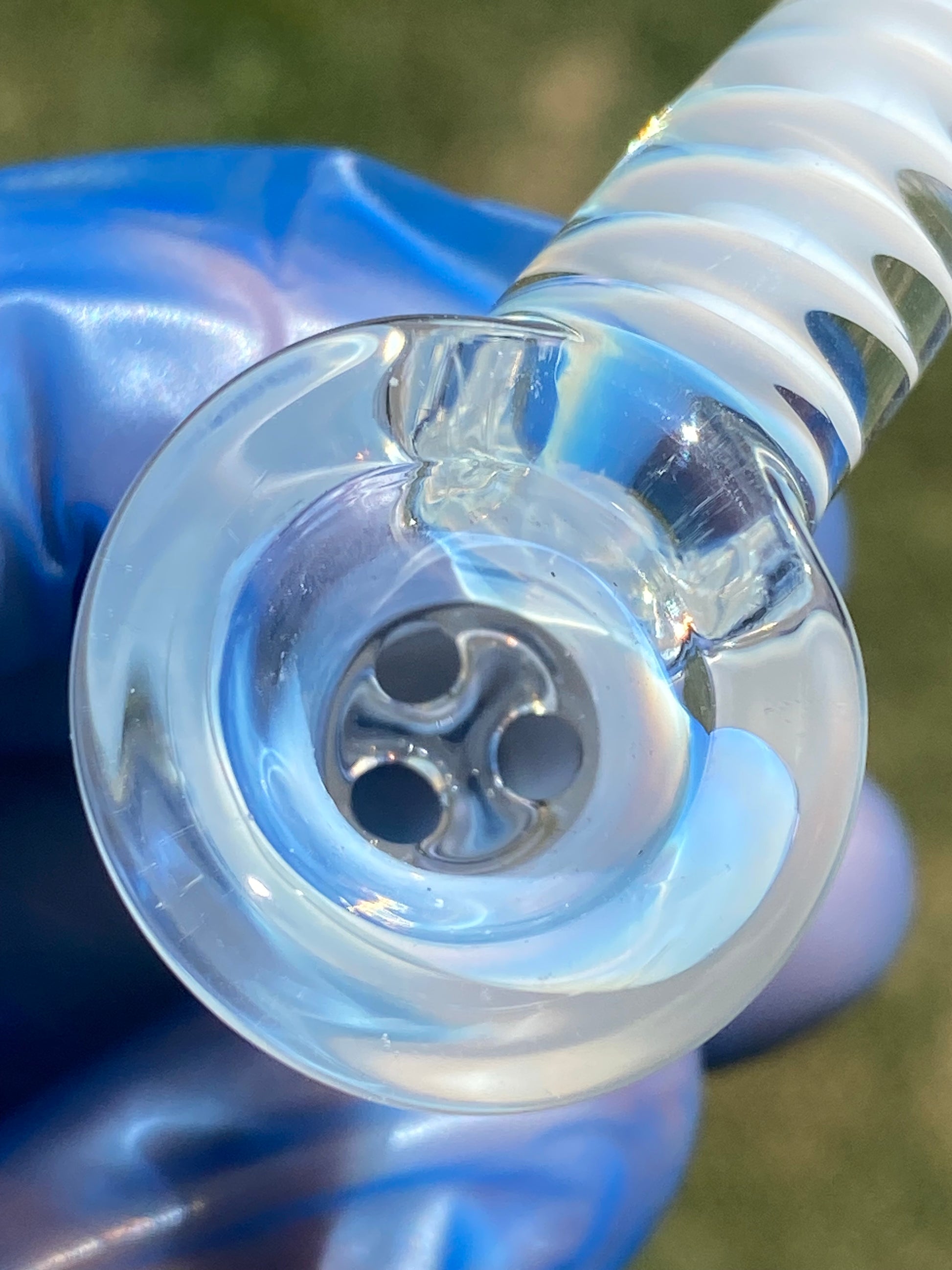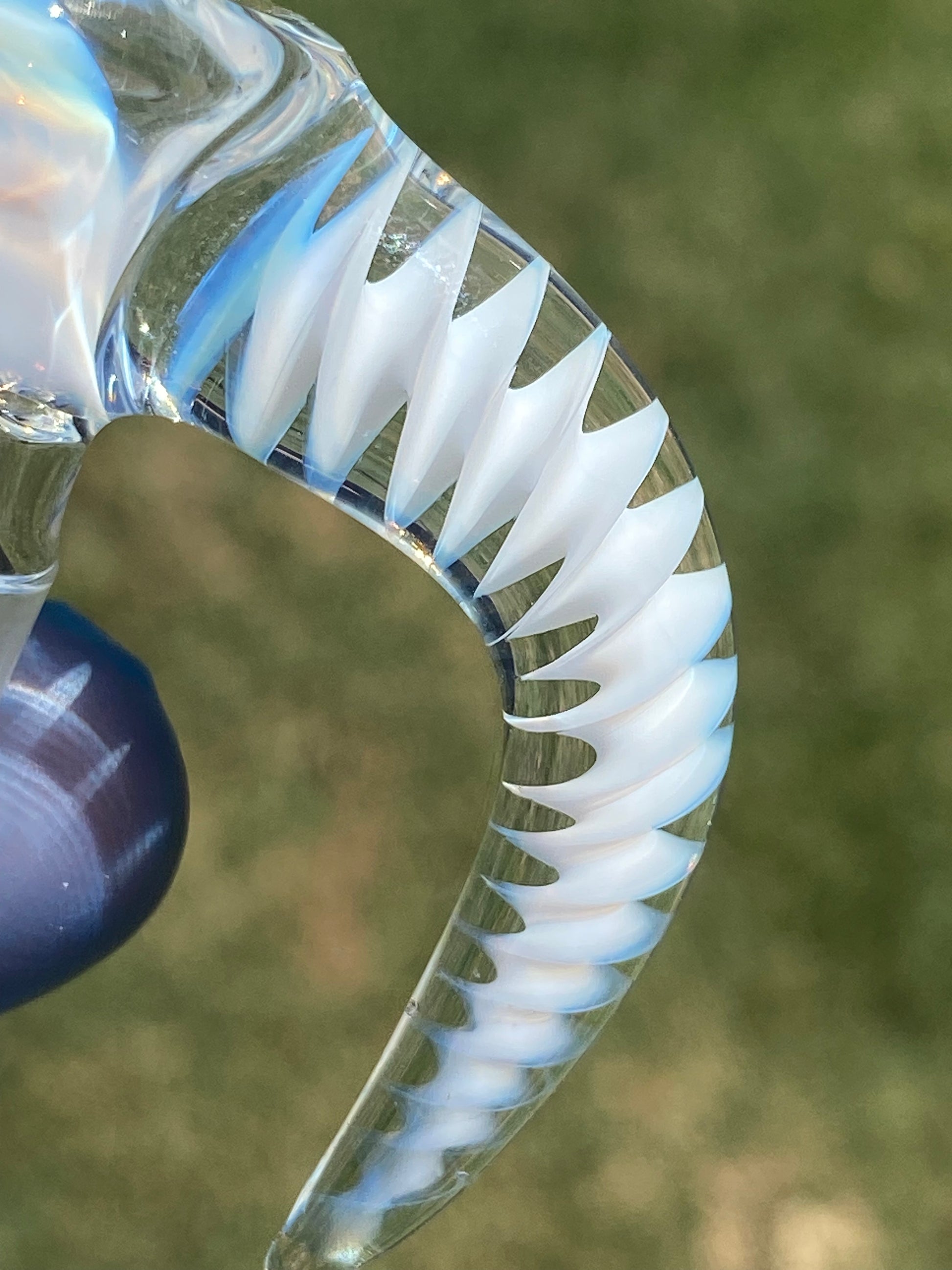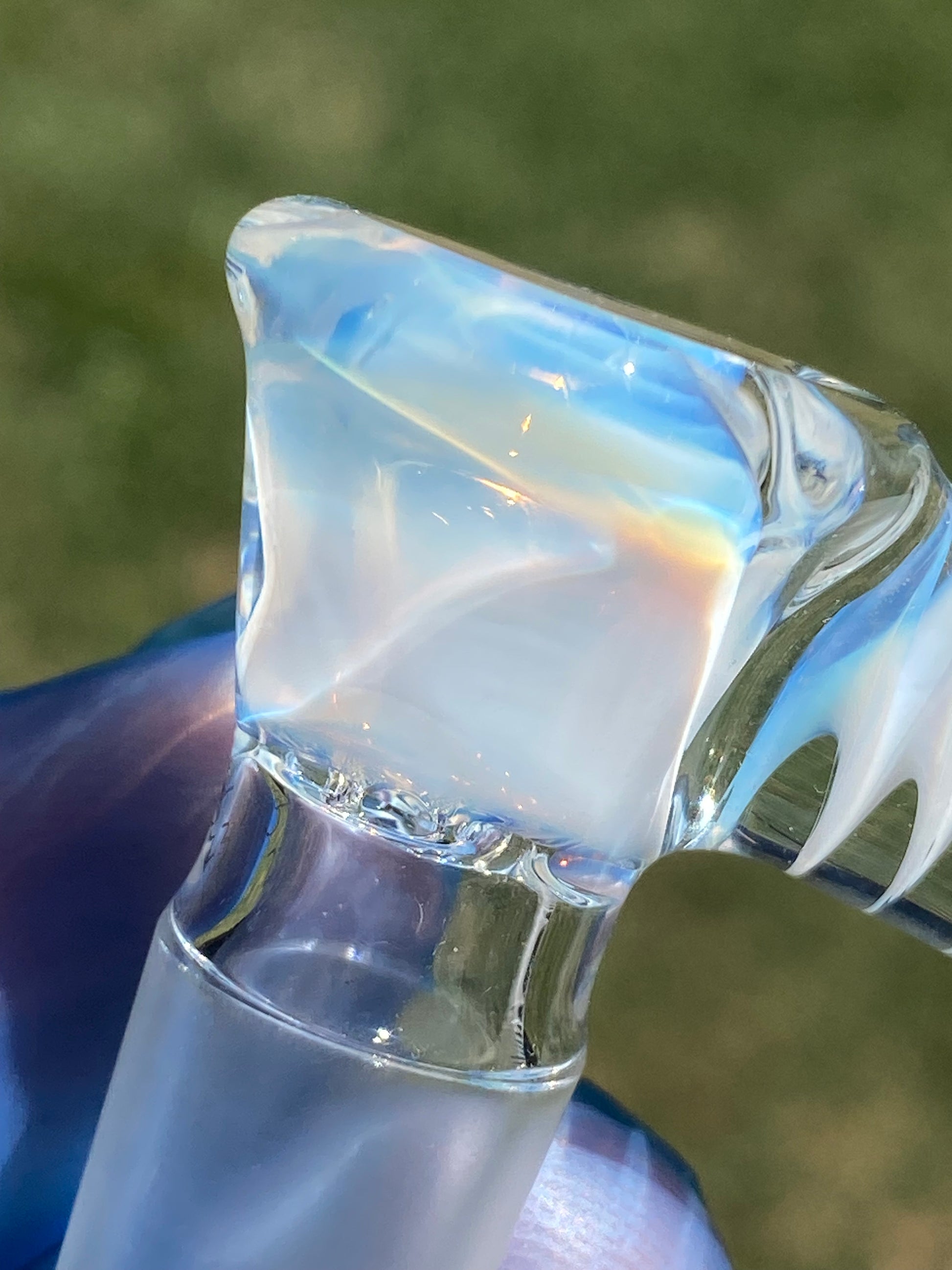 Each curve and contour is sculpted with care, creating a striking interplay of light through its twisted body. The smooth joint ensures a perfect fit and airtight seal, while the piece’s ergonomic form provides comfort and control during every use. Whether admired under natural sunlight or ambient indoor glow, its colors shift with an ethereal shimmer, revealing depth and craftsmanship from every angle.